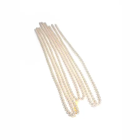 The glossy strands are strung with selected white Japanese Akoya pearls. These pearls are crafted with natural, stunning luster. These precious Japanese pearls complement your jewelry designs in a dainty way.