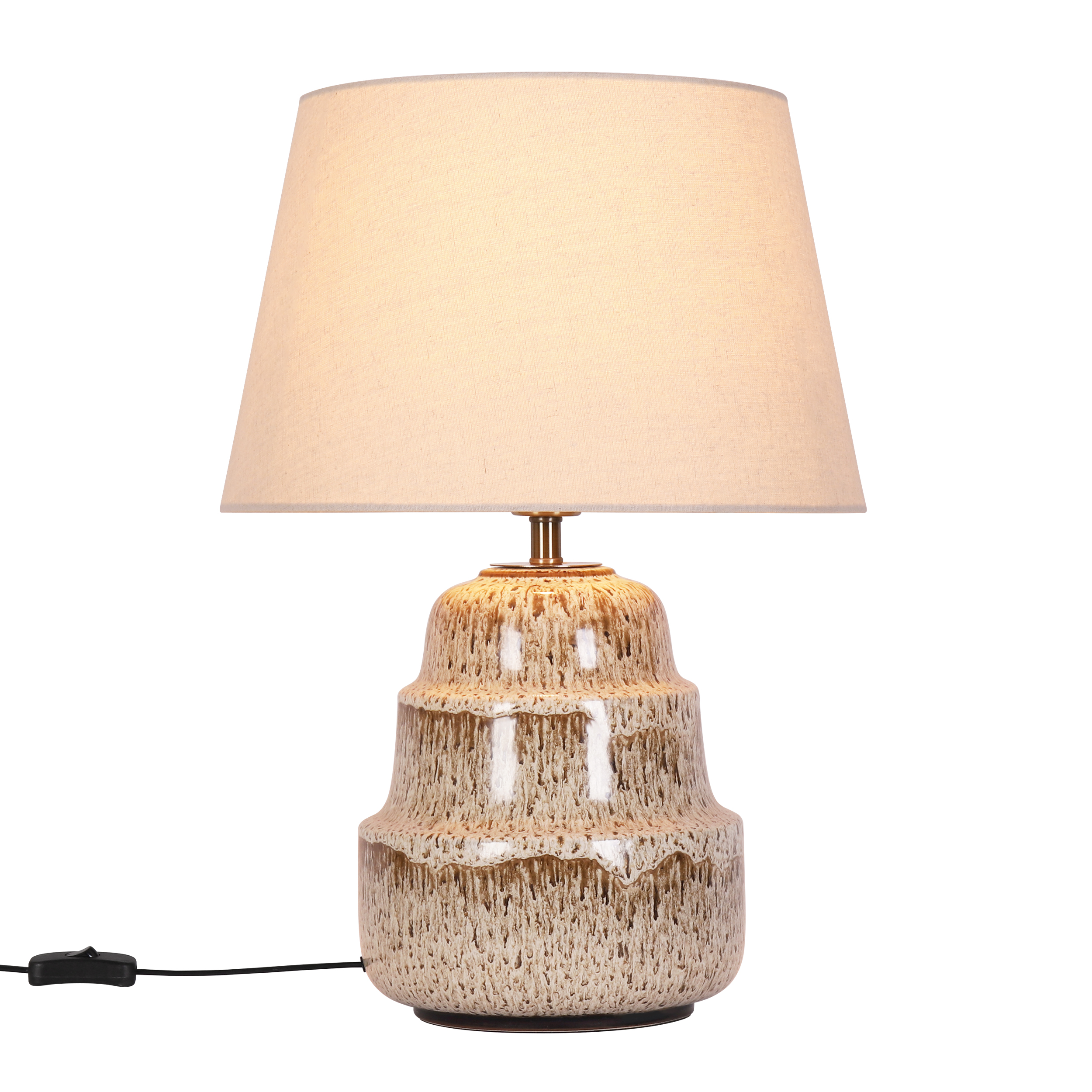 Transform any corner into a cozy, stylish retreat with this stunning table lamp. Its textured ceramic base boasts artisanal craftsmanship, blending organic charm with modern sophistication. Topped with a soft linen shade, it diffuses a warm, inviting glow that perfects the ambiance for relaxation or conversation.