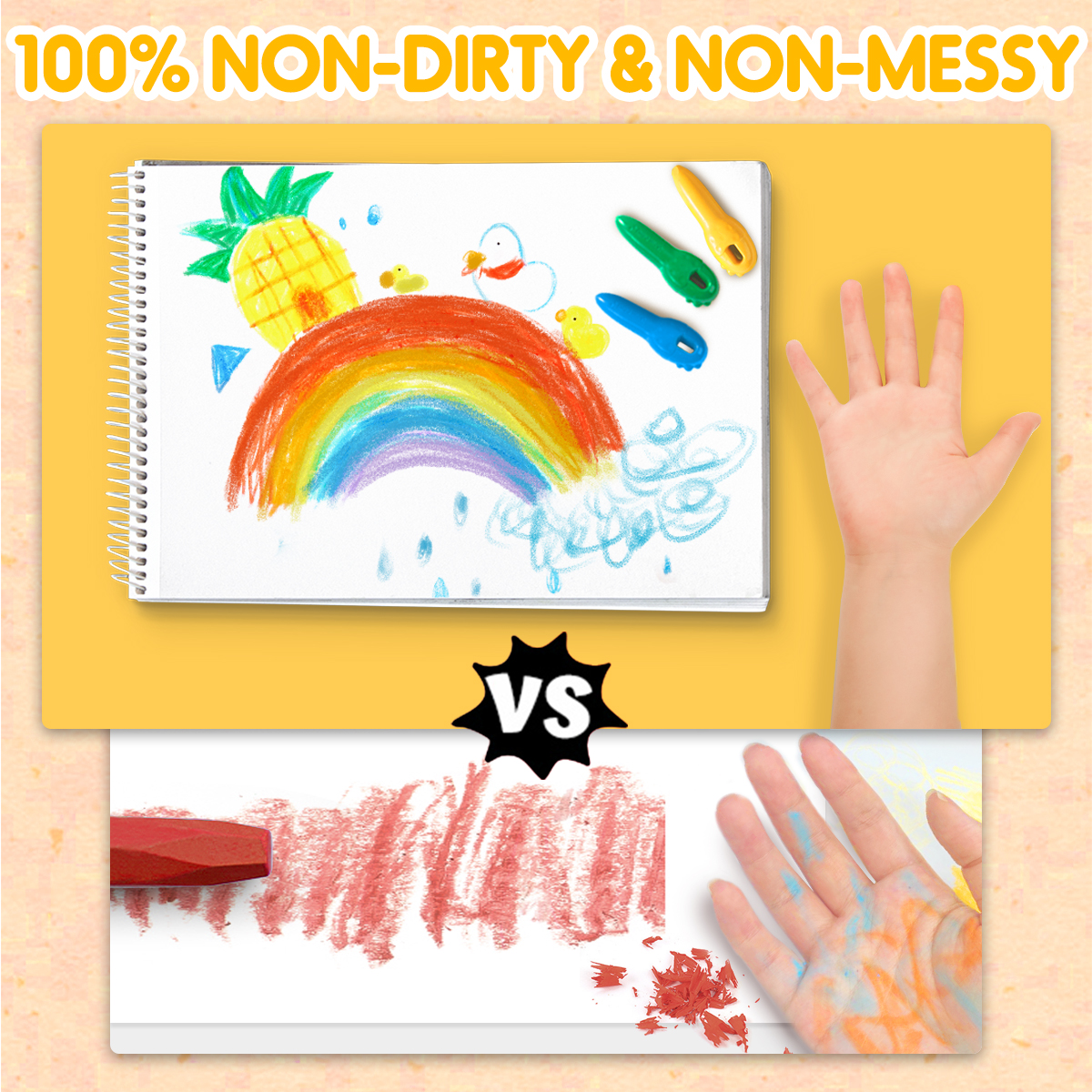 【99.99% No Dirty No Mess Crayons】 As a professional manufacturer of art craft supplies, Jar Melo upgraded key crayons 99.99% will not get your baby's skin dirty. But it can show very bright and lively colors on the paper! In this way, You don't have to worry about the mess your child makes anymore. Tips: If your child accidentally leaves color on the fabric, don't worry, it can be easily washed off by soaking in mild soapy water for 15 minutes.