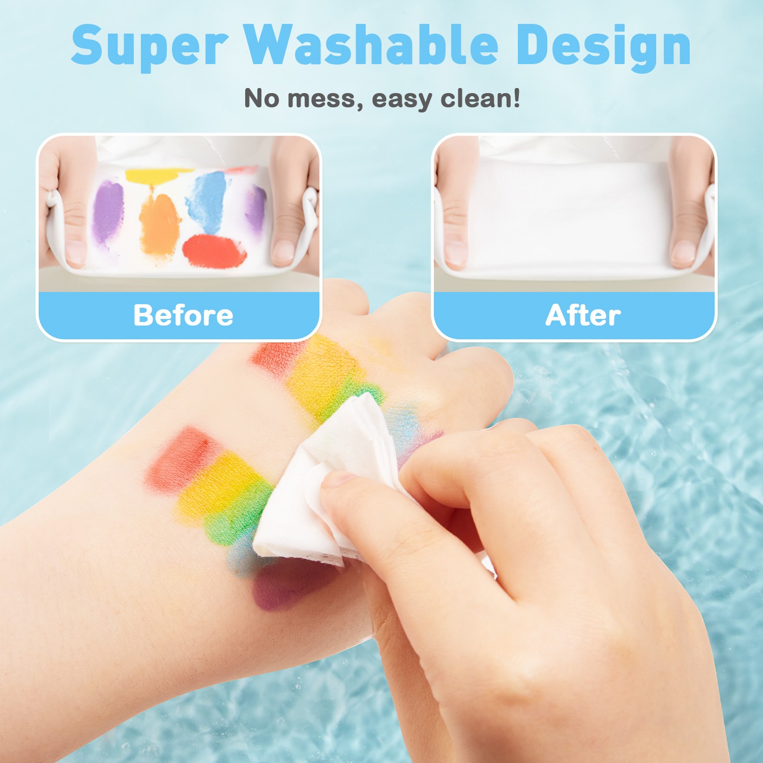 💦【𝗘𝗮𝘀𝘆 𝗪𝗮𝘀𝗵𝗮𝗯𝗹𝗲】It's less messy than finger paints, but it still involves tactile/sensory play.Our toddler finger paints are washable and easy to clean.The paint comes off your finger easily with a baby wipe or wet paper towel. mess free coloring for toddlers,NOTE: First Using please wet the ink pad with little water.