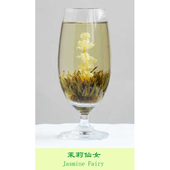 This glass of jasmine tea is served in a graceful way. The water mixture is highly clear, giving excellent aesthetic quality. The tea leaves flaunt slim and pointed shape which is only made possible by brilliant workmanship. Serve guests with this fine jasmine tea.