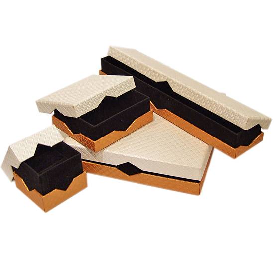 As shown here are jewellery and watch boxes made of paper. Different style with various sizes are available for all sorts of jewelleries. The soft lining provides comprehensive protection to the stuff stored.