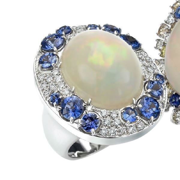 The variety of stones, which ranges over the colours of the flaming red of rubies, the green of emerald, the blue of tanzanite, the white of claire de lune, the bright colours of tourmalines, as well as the vivid violet and yellow, makes every jewel a very exclusive object.