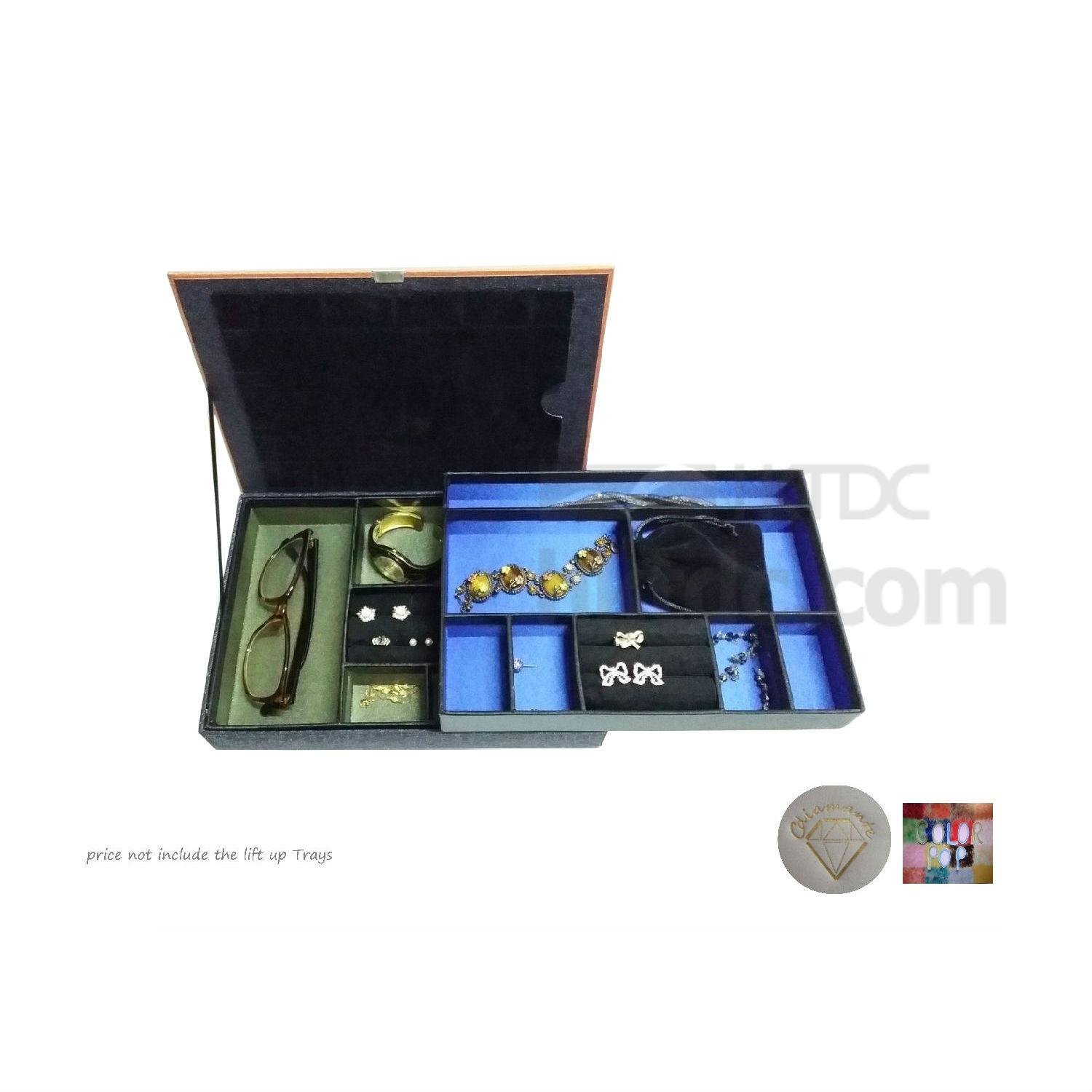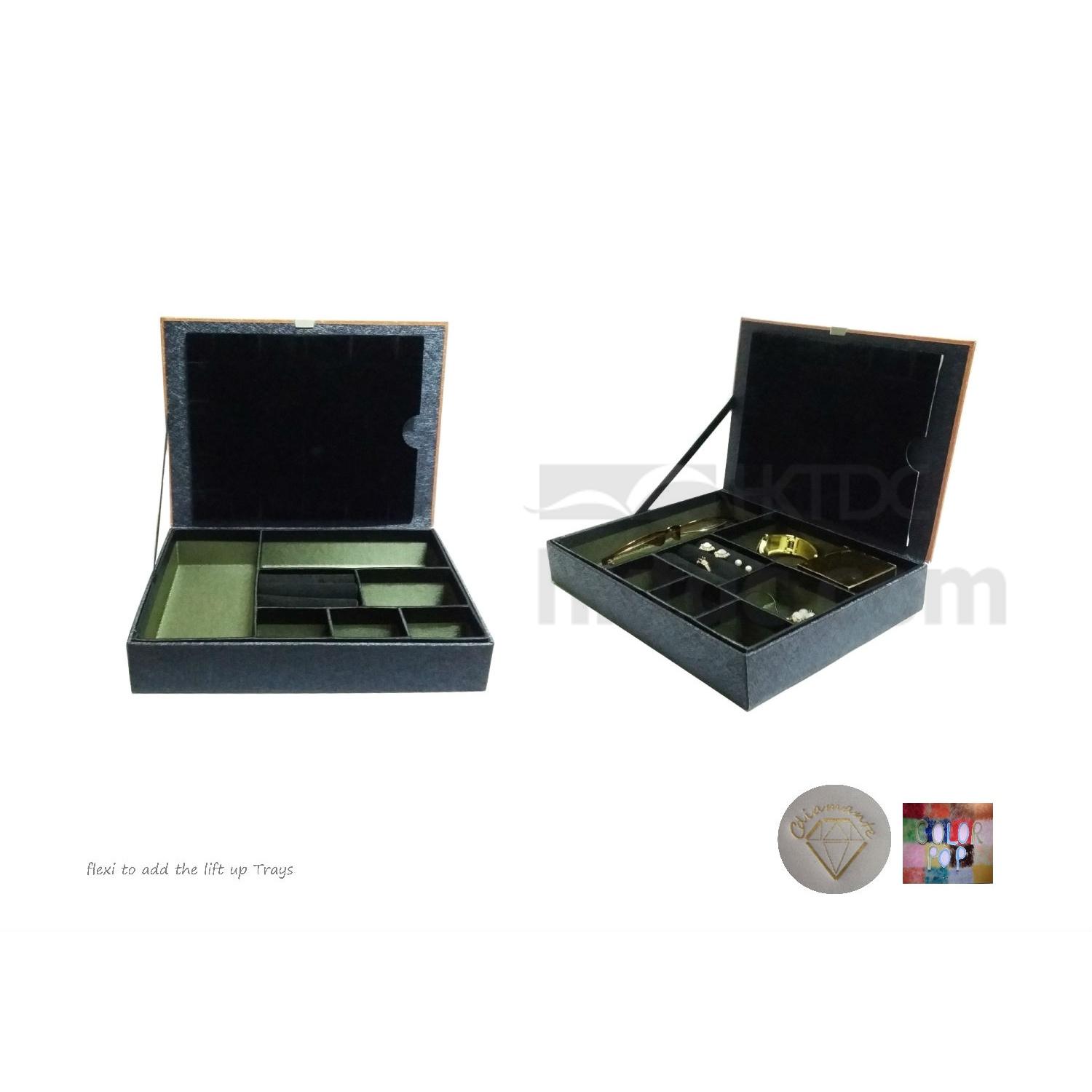 With a velvet pocket on lid to tidy the jewellery certificate or vouchers