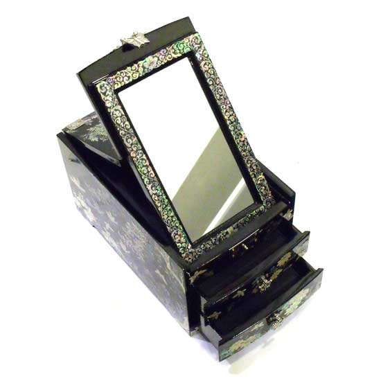 With an elegant design, the featured jewelry box is a beautiful addition to your vanity. The jewelry box comes with two drawers so that you can place different items in them. The box includes a mirror for you to match fashion accessories.
