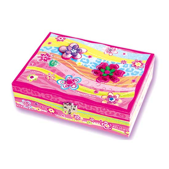 Featured here is an appealing jewelry box with a flashing light. This flashing light will turn on when the lid is opened and shuts off automatically after 6 seconds. With the fancy floral patterns, this jewelry box makes a great gift item for your little daughter.