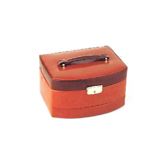 The leather jewelry box is characterized by its handy appearance. It is fitted with a metal lock to ensure secure protection for your precious collections. The box is also fitted with a handle to facilitate carriage.