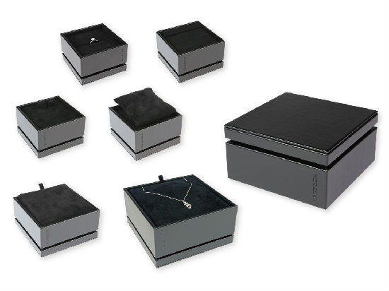 >The box outside is covered by leatherette and inside in suede, a wide choice of covering materials are available