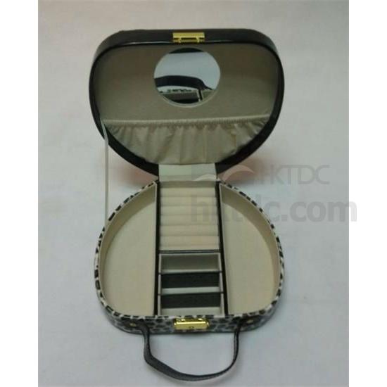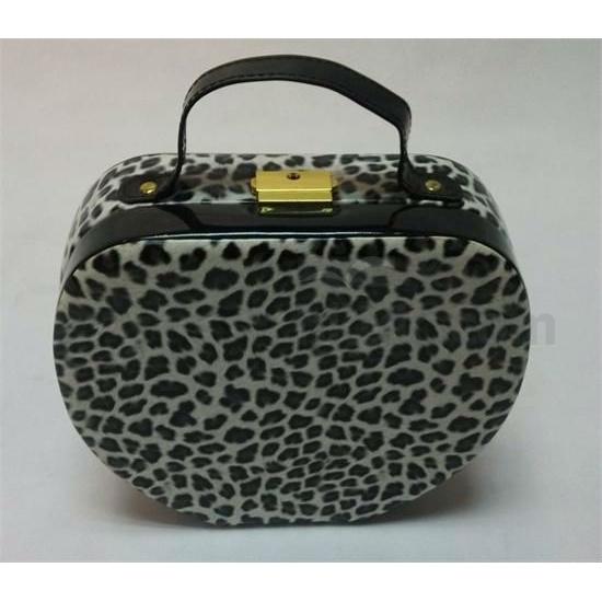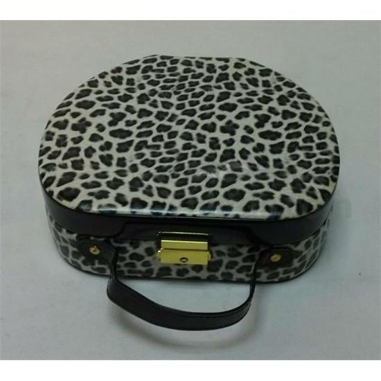 1.This jewelry box is oval shape with leopard PU leather and claimond veins,is a very fashion design with a gold lock