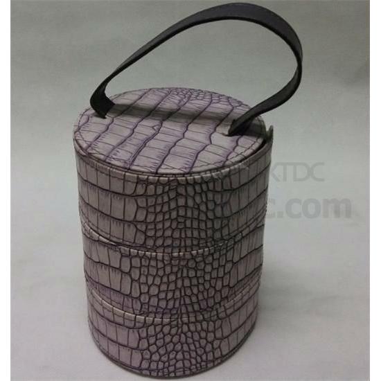 1.This jewelry box is a round one with purple crocodile PU leather and high quality felt inside