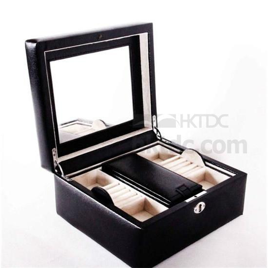 1.This is a luxury jewelry box made from split leather and suede