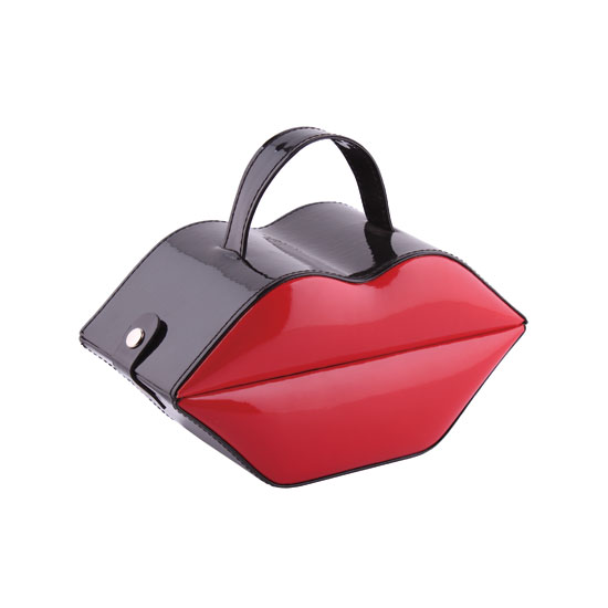 This is a jewelry box designed in a vivid lip shape. It comes with a sturdy handle on top for easy carrying. This unique box is also made with excellent workmanship and exquisite details.