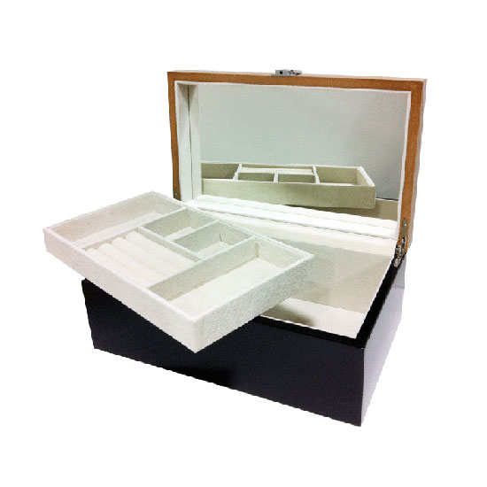 This jewelry box comes with 2 layers, a movable tray and a mirror. It is made of quality materials for a long service life. This jewelry box is durable and easy to use.
