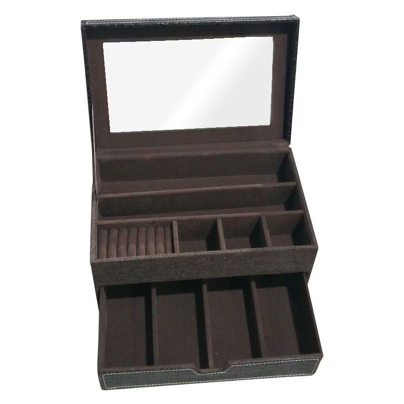 Materials:Artificial leather paper outside, plastic mold inside with the fabric lining. Mirror on top inside.