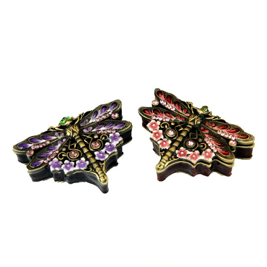 These featured jewelry boxes are designed in a butterfly’s shape. The jewelry boxes are built with metal alloy for promised durability. The fancy embellishments make the jewelry boxes popular among ladies.