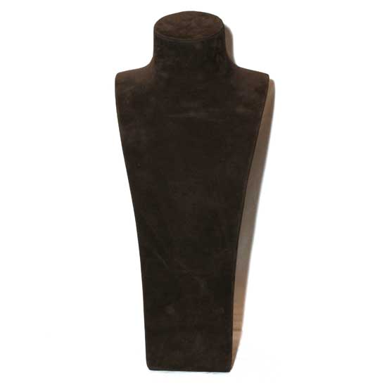 Showcased is a jewelry display with an elegant design. The surface is covered with velvet for a deluxe look. This graceful jewelry display definitely highlights the value of a high-end ladies' necklace.