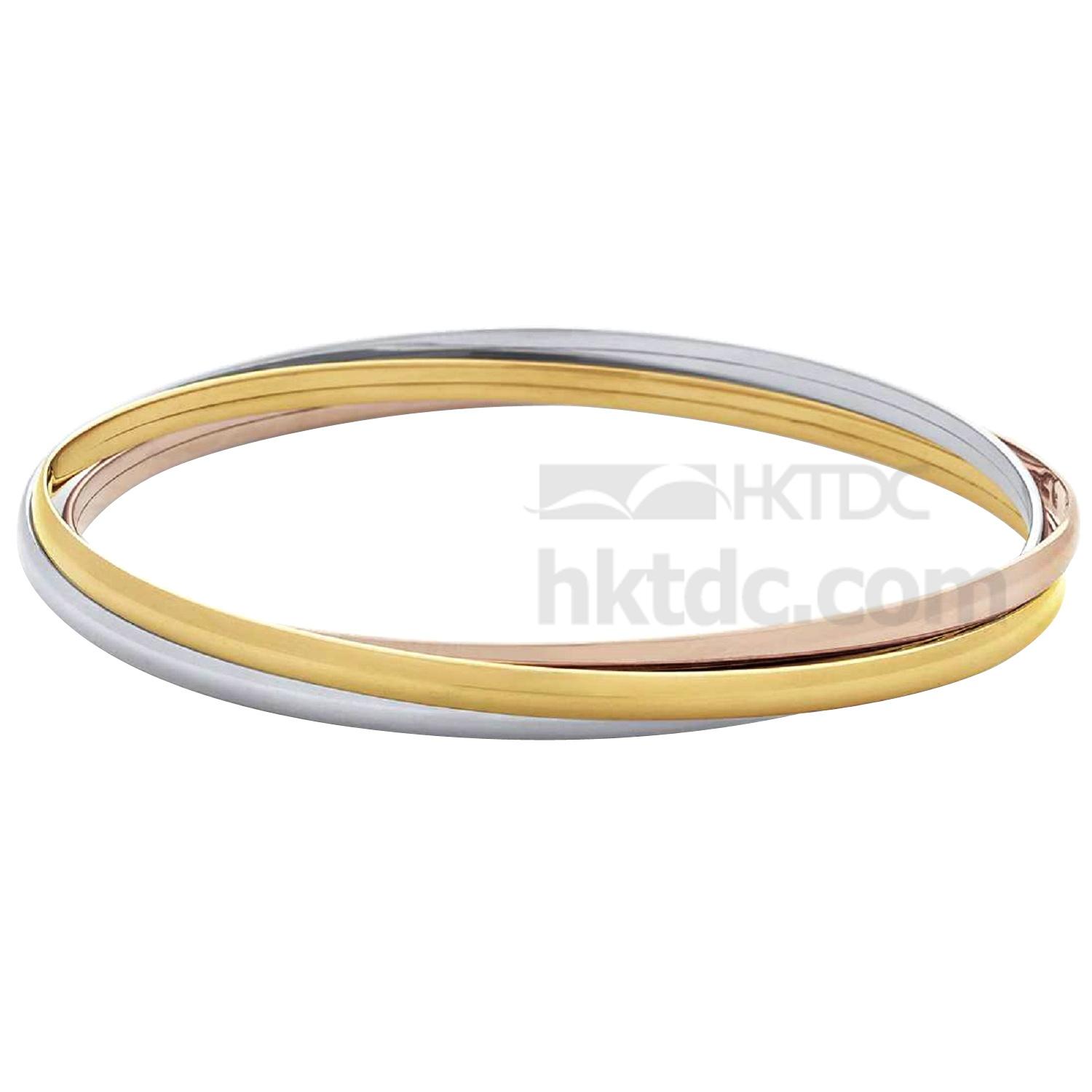 The Trio bangle bracelet is on the short list of favorites. Three hollow bands in 14k white, rose, and yellow gold intertwine for a mixed-metal look that is a versatile essential.
