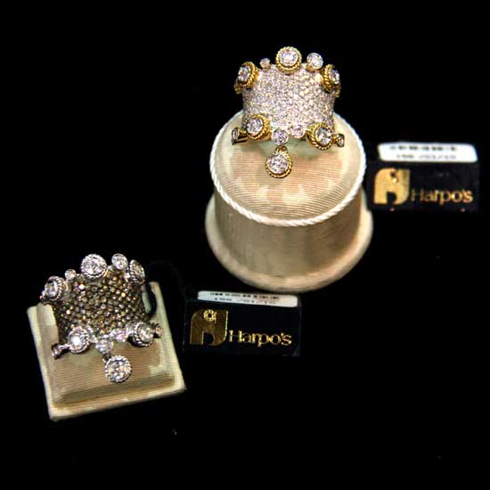 This set of gorgeous rings features a dazzling 18K gold construction. They boast sparkling white and brown diamonds all over, which showcase a hint of elegance. This set of stylish rings is suitable for special occasions.