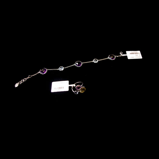 This jewelry set shines brilliantly with the blue and purple glints of topaz and amethyst stones. Both the ring and bracelet are crafted with close attention to details. This gorgeous set can spice up even the most ordinary look.