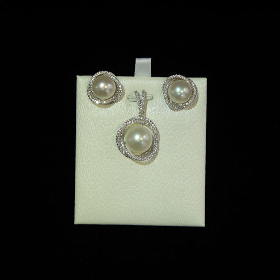 This fashionable jewelry set comes with a pendant and a pair of earrings. This jewelry set is crafted with natural fresh water pearls for an eye-catching look. The cubic zirconia stones add a touch of style to the whole set.