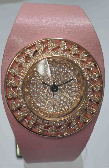 Featuring a pink wrist band made of genuine leather, this jewelry watch flaunts an elegance touch with white stones inlaid. Full inlaid of clear stone on the rose gold plated brass case and watch face give an exquisite feeling for wearers. Japan movement offers accurate time telling.