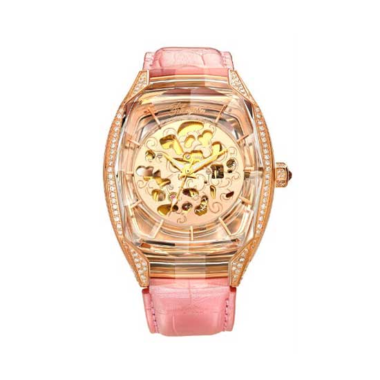 This is a mechanical jewelry watch that comes with a fashionable and elegant look. It is designed with a square diamond case and a leather strap. The high-precision movement ensures reliable timekeeping performance.