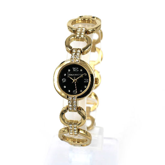 This is a jewelry watch that comes with a deluxe and elegant look. The allover dazzling stones on the bracelet add a touch of style to the whole piece. The round dial face has three hands and a quarter-increment Arabic numeral display.