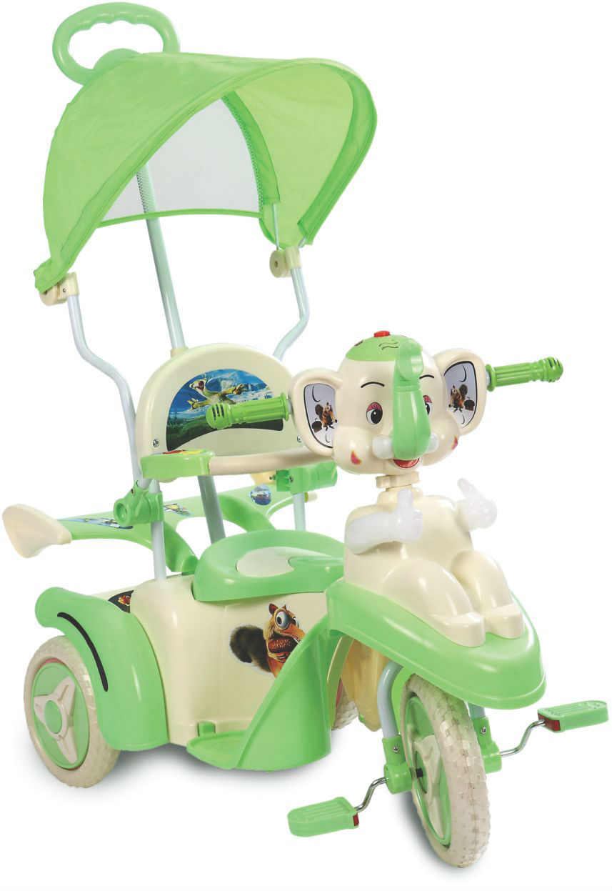 The Jolly Jumbo tricycle is with the a elephant faced with sound feature with parental handle, also with safety seat and footrest for comfortable drive of the child.