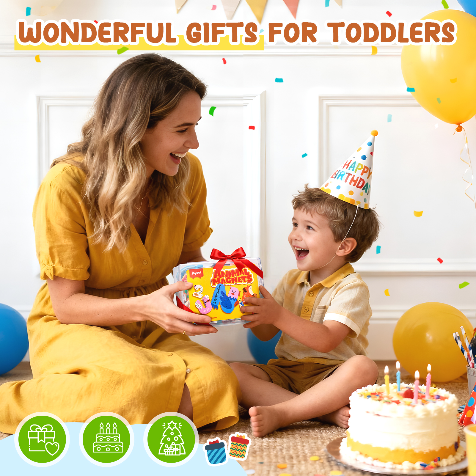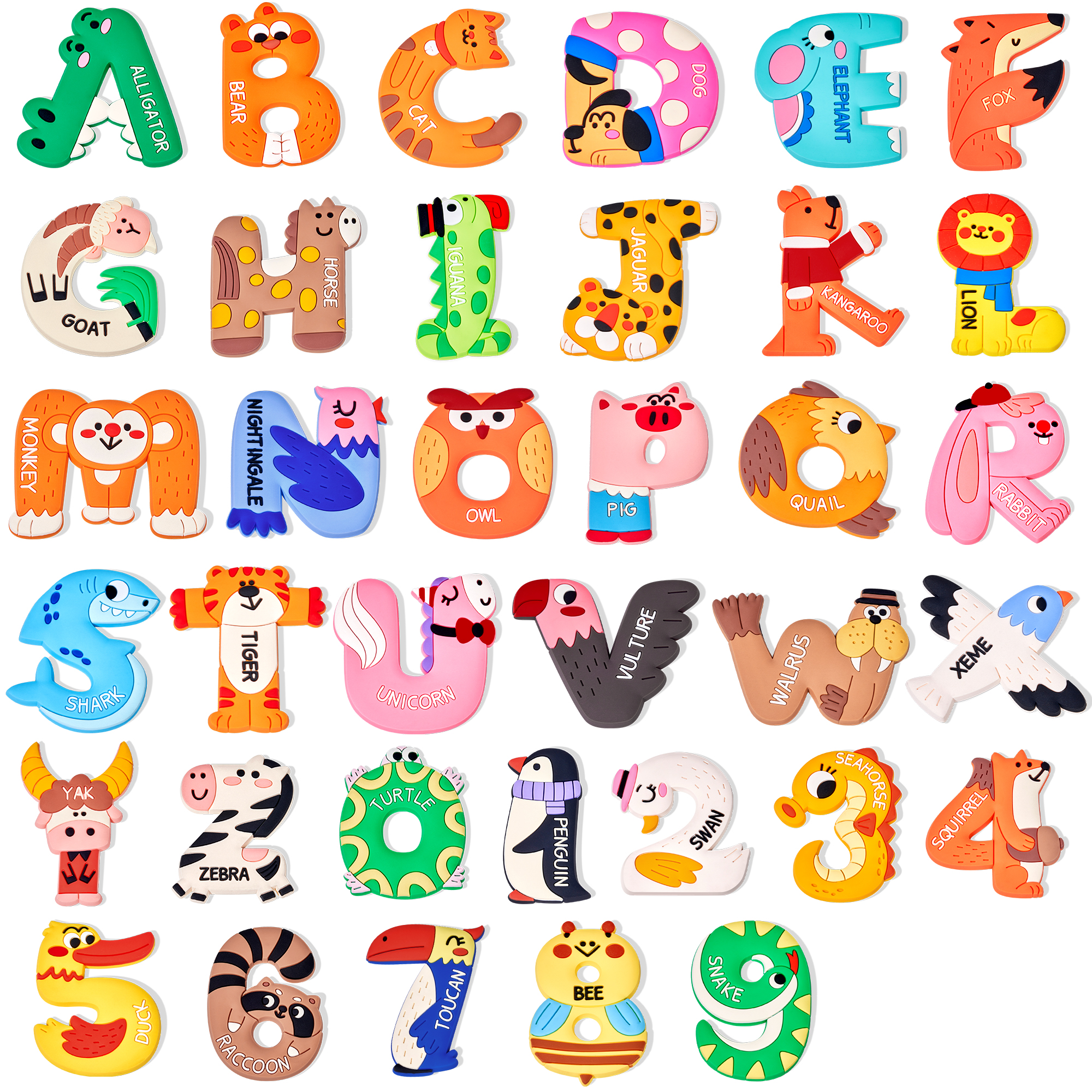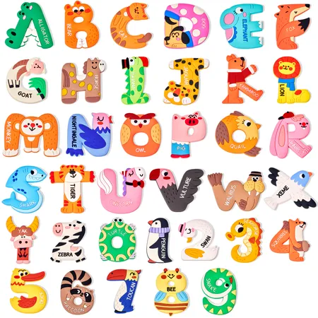 What's in it:JoyCat 36-piece magnetic animal alphabet and number set brings even more fun and learning to your fridge! This comprehensive set includes 26 uppercase letters and 10 numbers (0-9), each with a unique and adorable animal design. Made from soft PVC material, these flexible, durable pieces are great for little hands to grasp and play with safely, offering endless opportunities for creative spelling, early math skills practice, and animal recognition