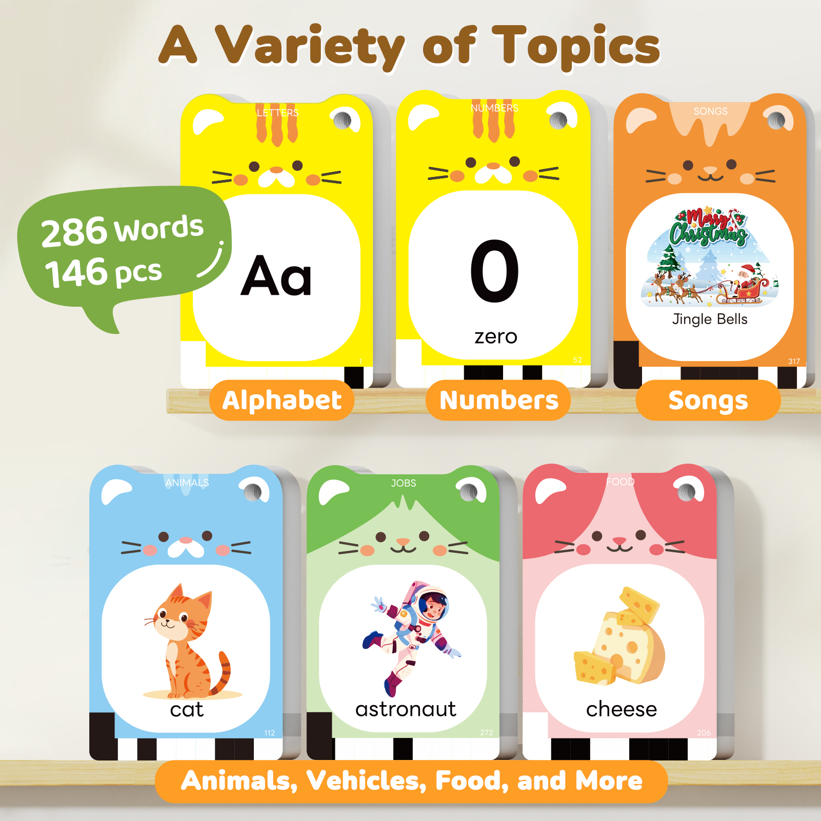 Sturdy & Toddler-Friendly Design: Built for little hands! Each card is crafted with 5-layer protection to resist bending, tearing, and spills.The easy-to-slide, tiny-hand-friendly design encourages independent exploration —littles can swap cards on their own!