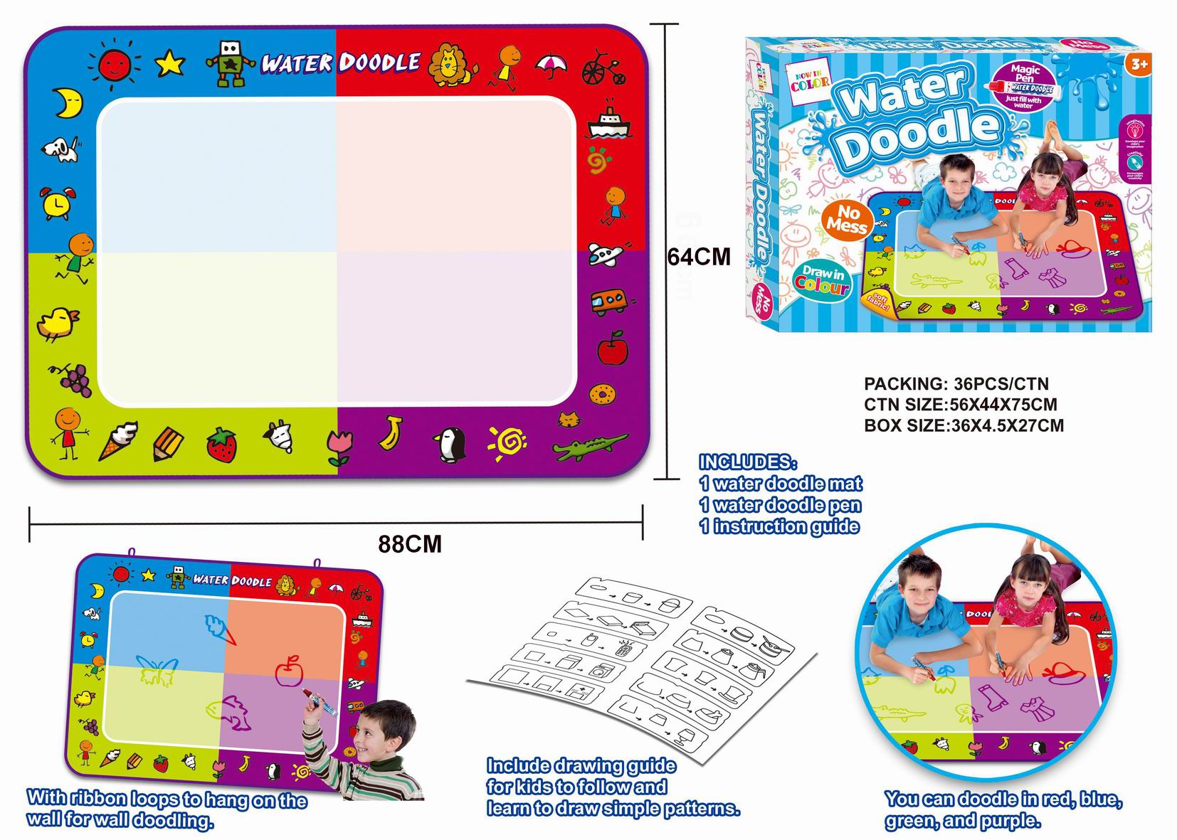Large Size with 4 Color Section –Size: 64*88CM. The water doodle mat has four color sections that are green,purple, orange and blue. Large size enables you to paint on the desk or floor and share the coloring area while playing with a friend