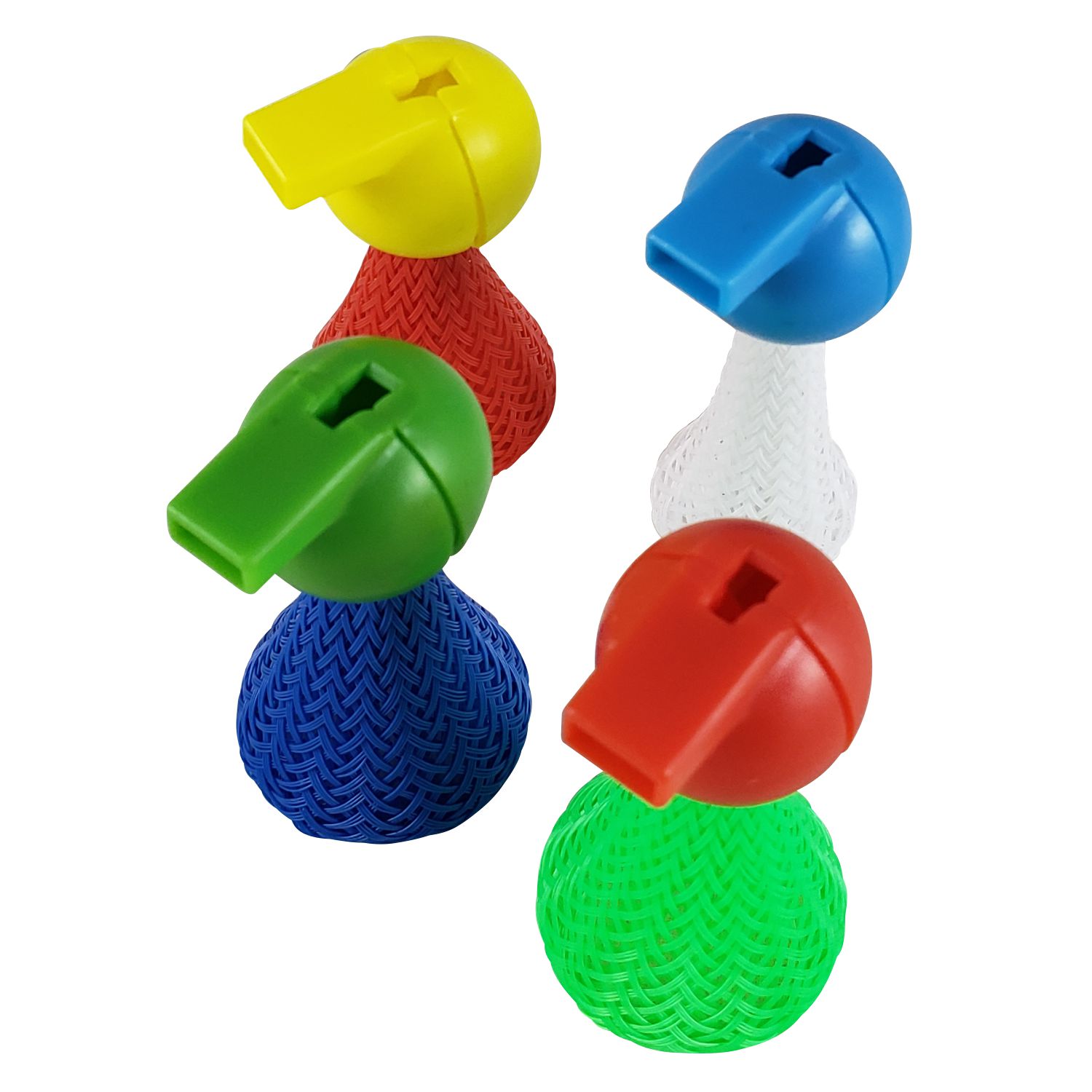 Very cute and funny, with good bounce property. Just press the head of the Whistle, he will jump up high, the heavy you press it,the higher it will jump.
