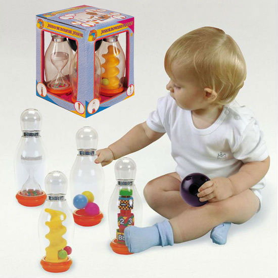 This bowling set comes with 1 ball and 4 see-through bowling pins. Each bowling pin features different stimulating activities. It guarantees your baby with hours of play fun.