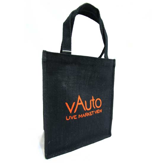 This shopping bag features a sharp orange print on a black surface. Made with jute material, this bag is lightweight and comfortable to carry. This youthful, casual bag comes in handy for your shopping.