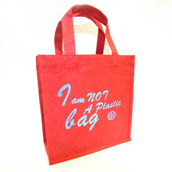 Featuring the line 'I am not a plastic bag', this shopping bag reminds users to care for the environment. Made in sharp red material, this shopping bag is youthful. This lightweight shopping bag is a basic addition to your accessories.