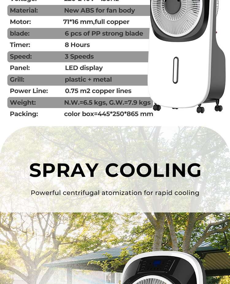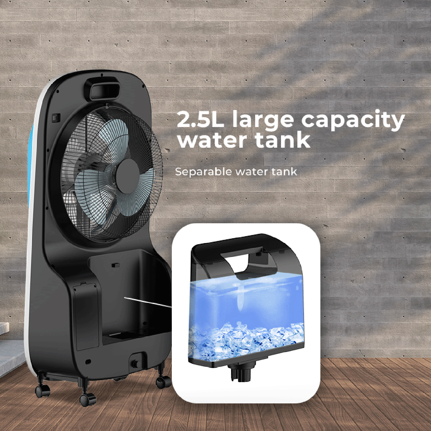 2liter water tank can support 4 hours use, enough for the room to cool down.