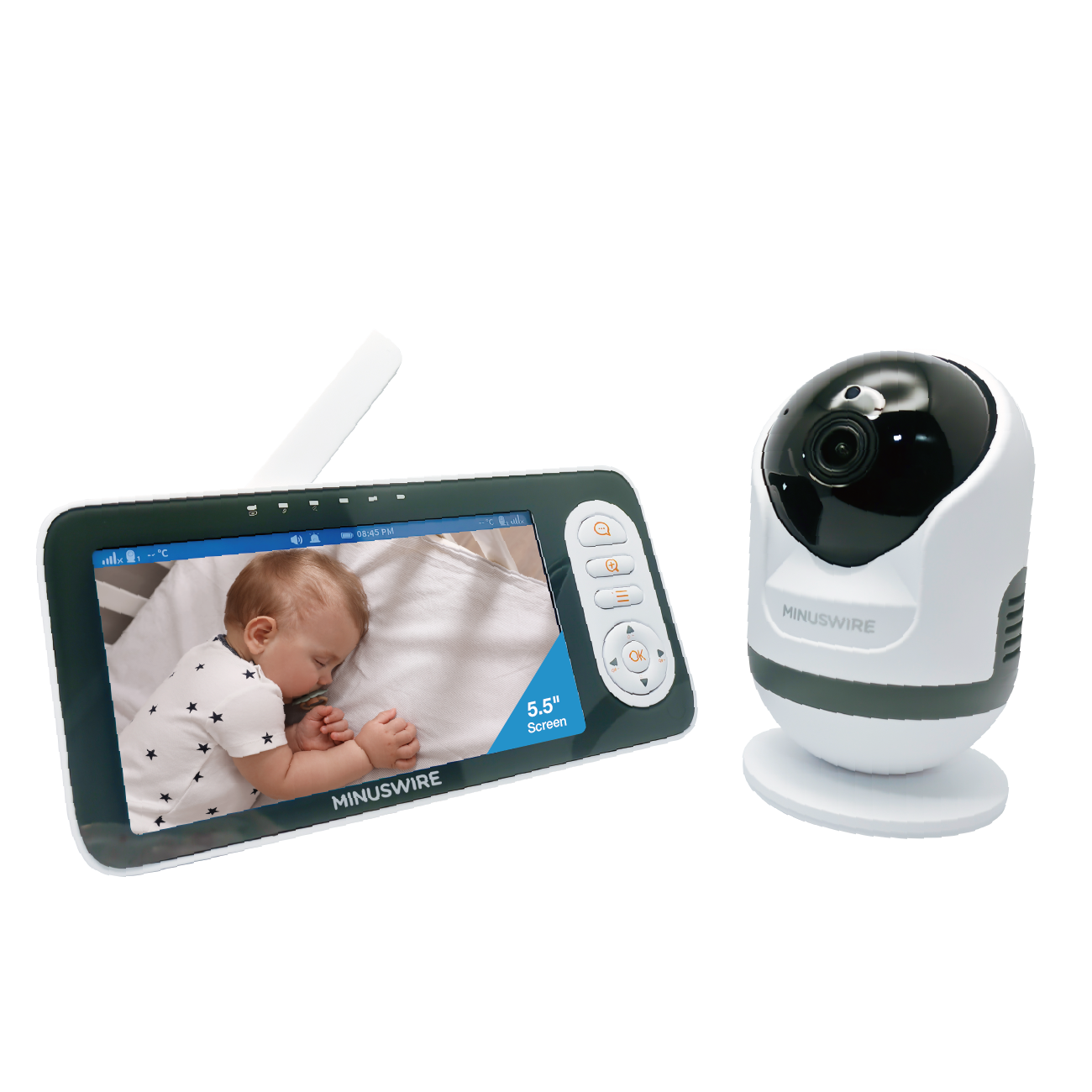 WiFi + 2.4G FHSS wireless Video Baby Monitor with PTZ camera and night light. App companion support, can monitor anywhere and anytime, Ai features includes, real crying detection, motion detection, action tracking and WiFi set on or off anytime, 1280 x 720P camera resolution, 720P IPS 5.5" screen, On Screen picture capture and auto save to micro SD inserted and playback when enter into standby mode to view lovely baby pictures saved. Video also supported. Two-Way talk, auto infrared night vision, 6000mAH rechargeable battery for the displayer, VOX mode, White noise + Lullabies soothing baby sleeping, 1000ft reception range, Timer reminder, Loss or poor connection alert, Temperature detection and alert when out of preset range, low power alert, auto standby mode to save power, with DC5V 1A switching mode power adaptor and Type C USB charging cables.