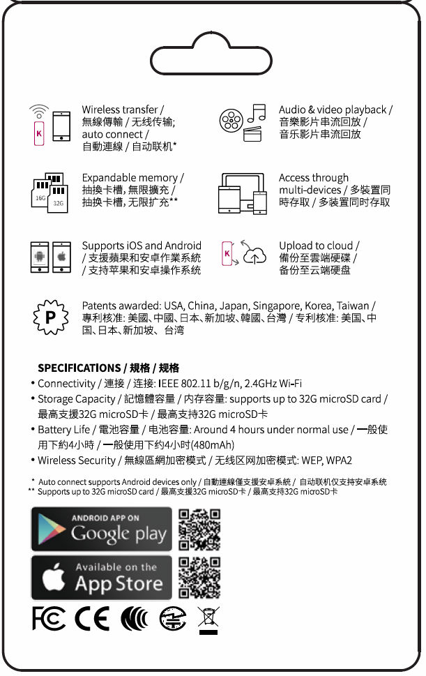 Kdrive Wi-Fi USB drive is a portable Wi-Fi flash drive to share and backup your personal files in phone or tablet. Work as a permanent personal cloud, with Kdrive never fear of the loose of your data and always access them wirelessly or even share with anyone you want. With swappable micro SD slot function, user can expand memory storage with their will