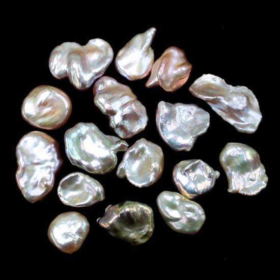 Featured are Keshi pearls showing an irregular natural shape. The uneven surfaces exhibit uniqueness with nice luster. The special appearance of these pearls makes a perfect finish to exquisite designs.