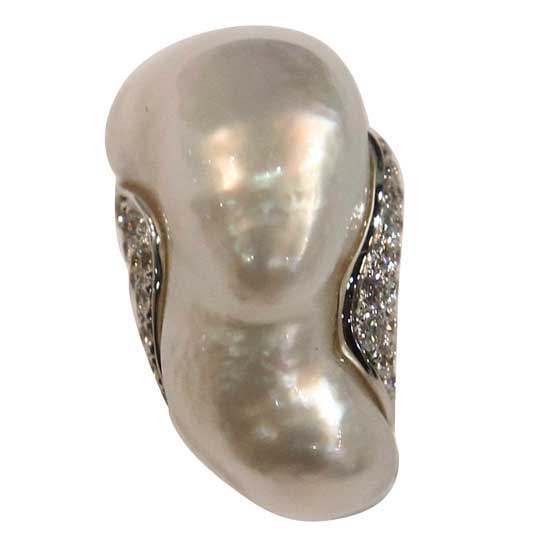 The keshi pearl ring is set with sparkling diamonds for added class. The 18K white gold casting ensures timeless elegance. This keshi pearl ring flaunts its natural beauty.