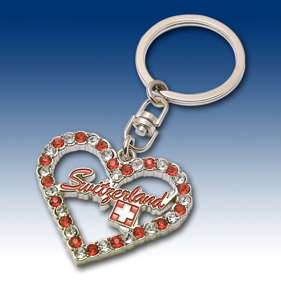 The elegant stone key chain with nickel plated is designed in heart shape and pressed with "Switzerland" and the national flag. It is an ideal gifts for promotion and advertising purposes. Moreover, it is suitable for all ages and sexes.