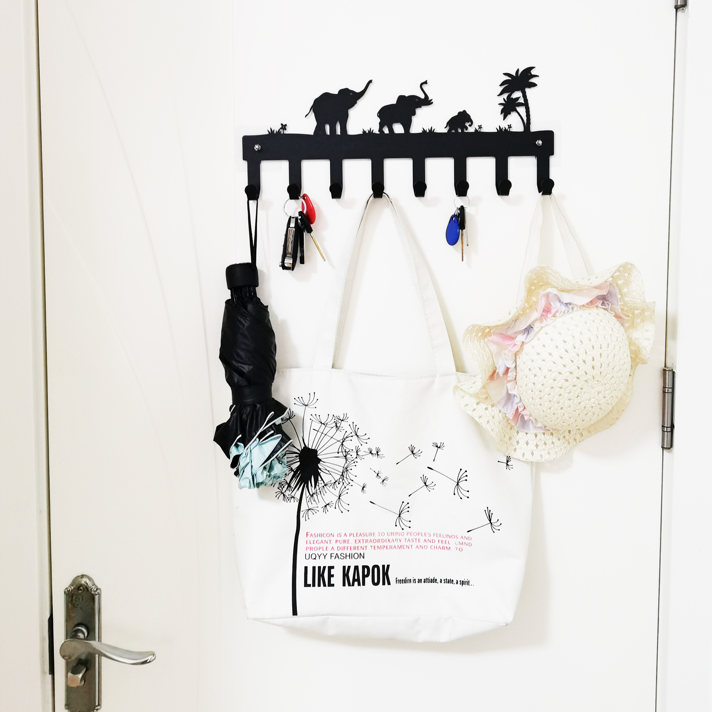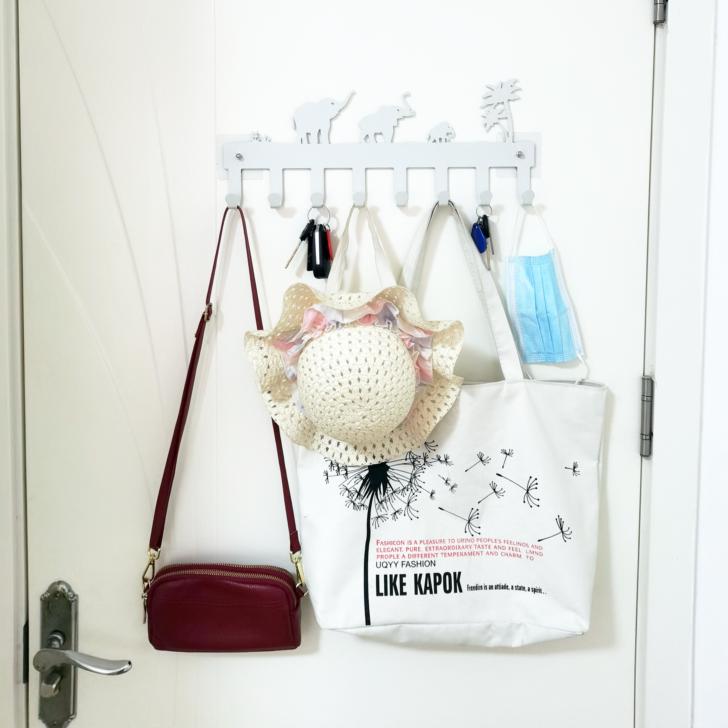 Package include: 1* Key hooks for wall decorative, 4*screws, 3*drywall anchors, 3*nail free stickers