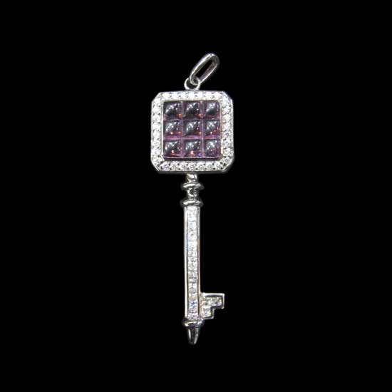 This unique pendant features a key-shaped design. The pendant is micro-paved with twinkling white CZ stones on the silver setting. The pretty key pendant is a great gift choice for any special occasion.