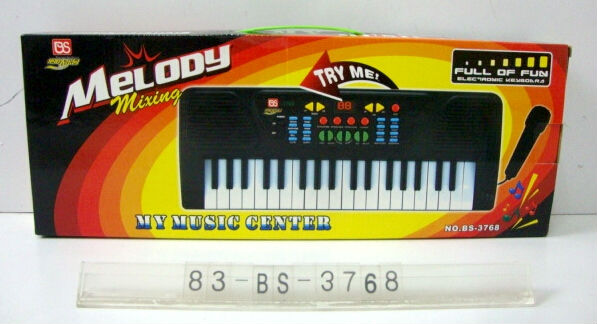 Function: 37 key electronic organ, 8 kinds of trembler, 8 kinds of rhythm, contain 8 chords, 4 kinds rocks, 4 kinds sound effects to choose, 22 grades time and 4 grades volume to control record.