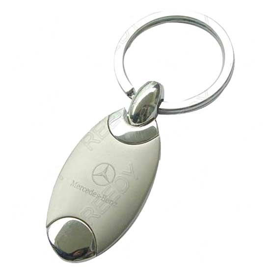 The delicate keychain features an oval shape with polished silvery accents. The robust construction promises lasting durability. This classy keychain is a perfect corporate gift.