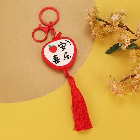 These are keychains. Shaped like various fruits and with Chinese blessings like (no worries) on them, they come with colorful tassels. Ideal for organizing keys, they also add a cute touch when attached to bags or wallets.