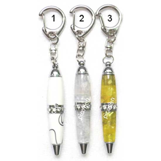 The keychain pen comes with an engaging miniature design. It is available in various elegant tones. The pen makes a convenient writing tool and an eye-catching decoration.