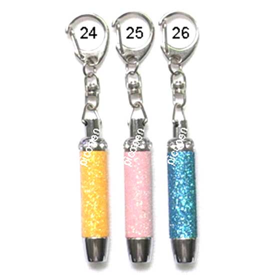 The keychain pen features a solid-colored design. It is finished with an engaging shiny effect. This pen is easy to bring along and makes a very convenient writing tool.