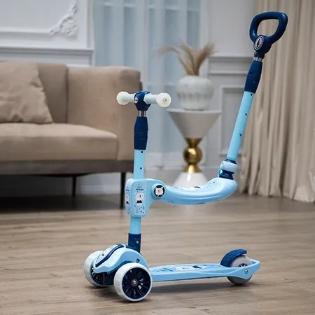 Foldable, wheels with lighting, PU handle, gravity steering.