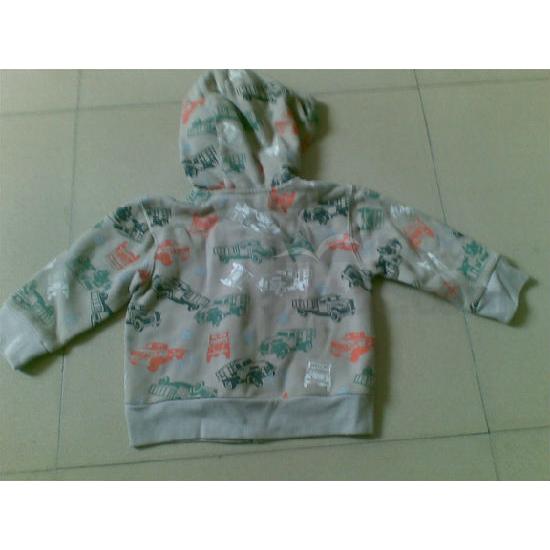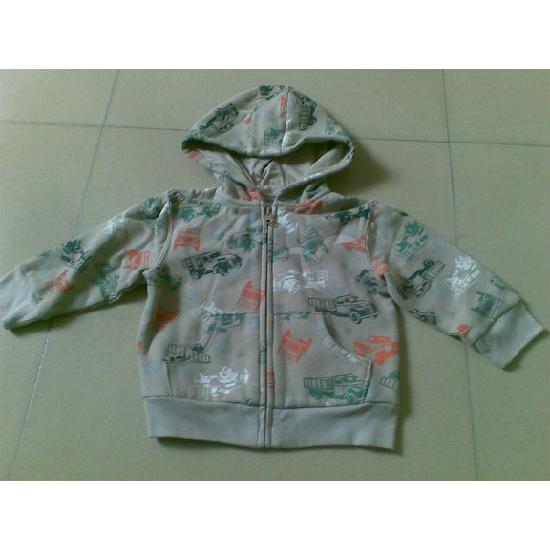 Let your son stay warm in this fleece hoodie. Designed with motifs of various vehicles allover, the hoodie will be your son’s favorite. It is created with a front split kangaroo pocket to provide space for tiny items and a warm place for your son's hands.
